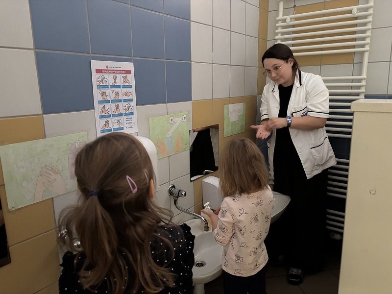 Povodom Svjetskog dana čistih ruku posjetila nas je patronažna sestra Magdalena Mihajlović, koja je s djecom razgovarala o važnosti pranja ruku. Djeca su naučila kada i kako pravilno prati ruke te zašto je to važno za naše zdravlje.