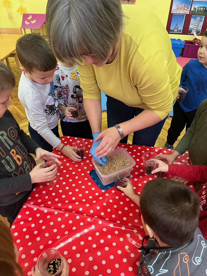 U našem vrtiću je održana radionica sijanja pšenice, kojoj su prisustvovale članice Udruženja žena “Pudarce” Bijelo Brdo. Sijanje pšenice predstavlja jedan od tradicionalnih običaja vezanih za obilježavanje Božića, a djeca su imala priliku da se upoznaju sa značenjem ovog običaja i simbolikom kroz praktičan rad i druženje.