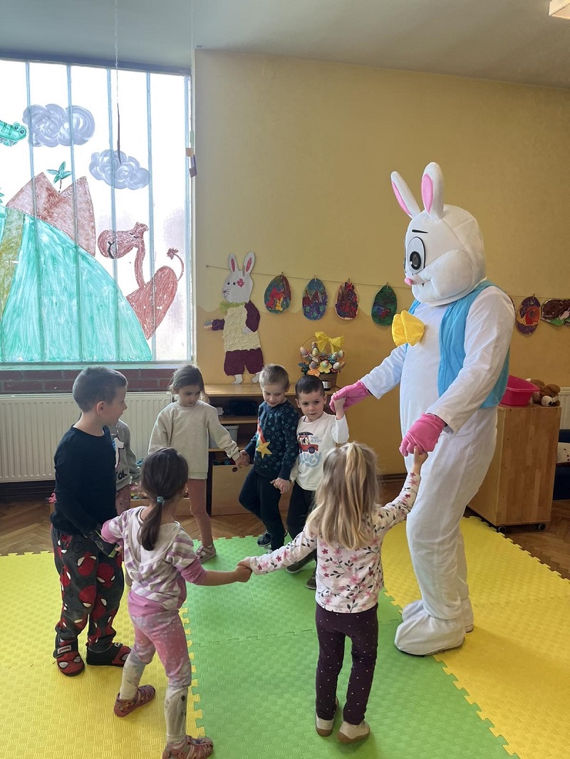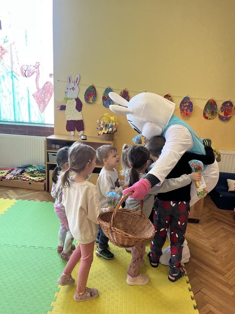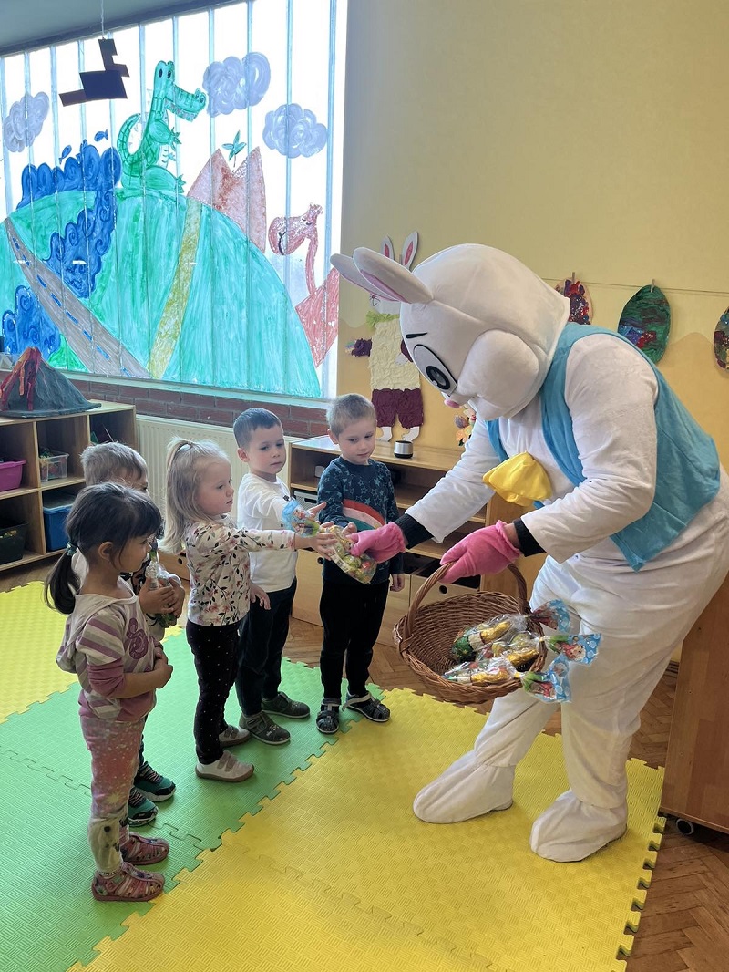 USKRSNI ZEKO U BATINI Uskrsni zeko razveselio nas je svojim dolaskom i donio puno veselja, osmijeha i slatkih iznenađenja. Djeca su s oduševljenjem sudjelovala u pjesmi i plesu, družila se sa zečićem i uživala u veseloj blagdanskoj atmosferi.